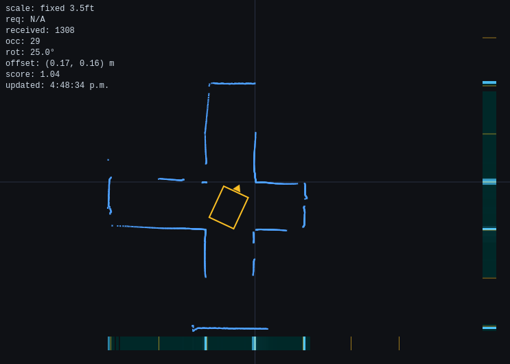 My Role: 100% of software architecture, algorithms, and implementation Tech Stack: Rust, Tokio async runtime, RPLIDAR A1M8, MPU6050 IMU, React + Konva Video: Simulation and maze trials