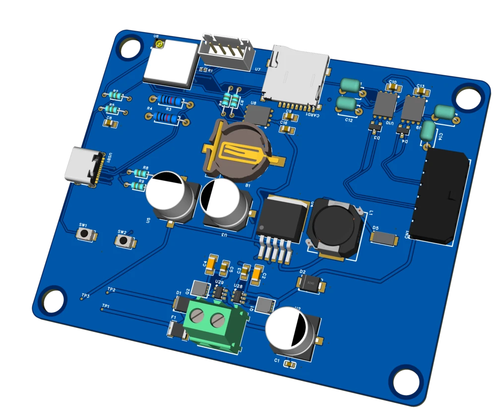 The custom four-layer PCB is built around the ESP32-C6, with dual CAN transceivers, a DS3231 temperature-compensated RTC with coin cell backup for persistent timestamps across power cycles, and a MicroSD socket for local logging. The external antenna connects via W.FL, allowing it to be routed outside the enclosure for optimal RF performance.